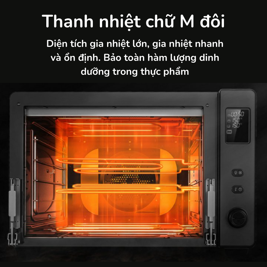 Gồm 2 thanh nhiệt chữ M cao cấp + thanh nhiệt chữ O ở sau quạt đối lưu 8D giúp nhiệt nhanh đạt và ổn định, đều nhiệt.