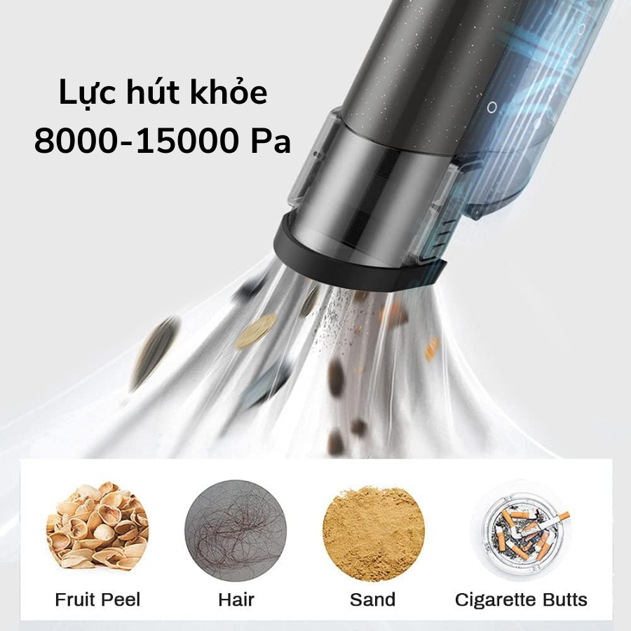 Máy gồn hai chế độ hút: 8Kpa và 15Kpa. 8 Kpa chủ yếu để làm sạch hàng ngày, trong khi 15 Kpa thích hợp để loại bỏ bụi bẩn sâu. Làm sạch xe và nhà của bạn dễ dàng và hiệu quả hơn.