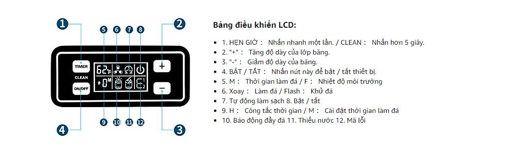 - Máy làm đá viên TAKAIPRO TK-HZB80 rất dễ sử dụng và vận hành, nhờ bảng điều khiển bằng tiếng anh. Thao tác vận hành đơn giản, chỉ cần bật nút on/off rồi bấm cộng trừ để chọn độ già của đá như mong muốn là máy có thể vận hành