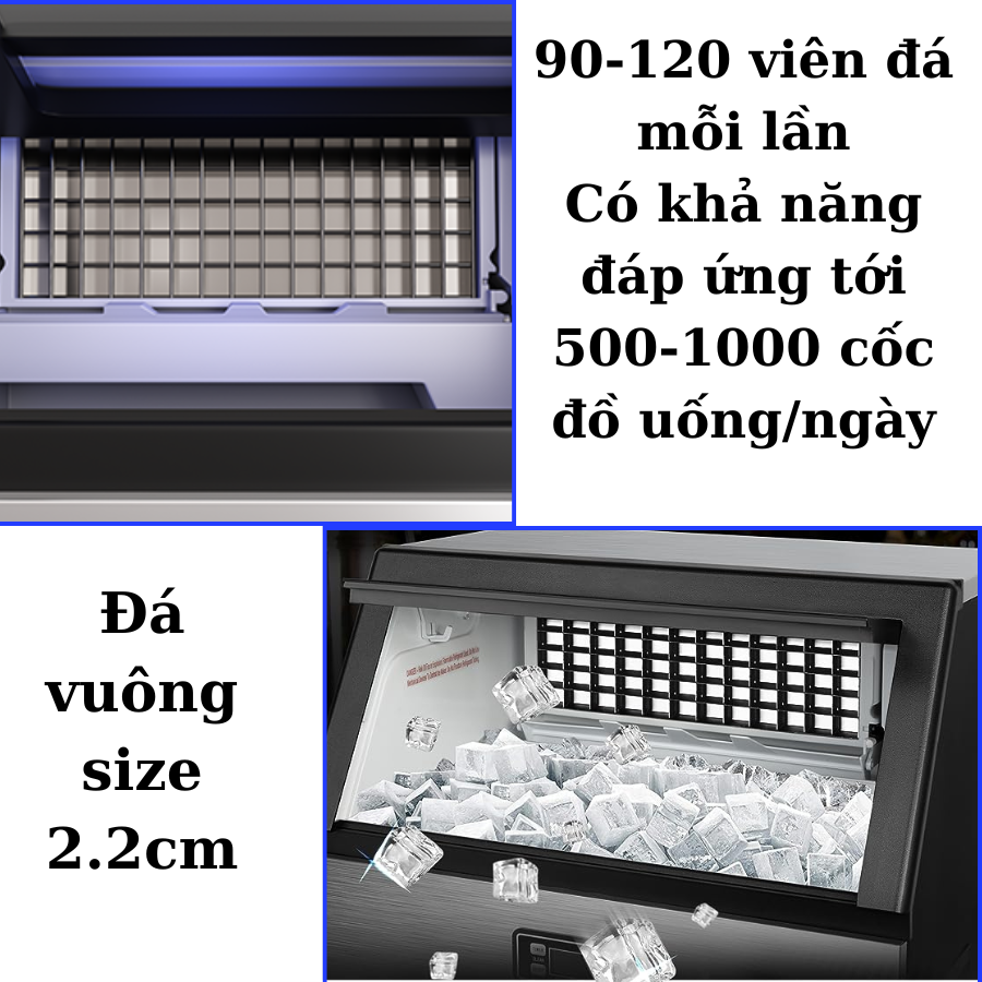 • Làm đá siêu tốc chỉ từ 12 phút, mỗi mẻ làm được 120 viên đá