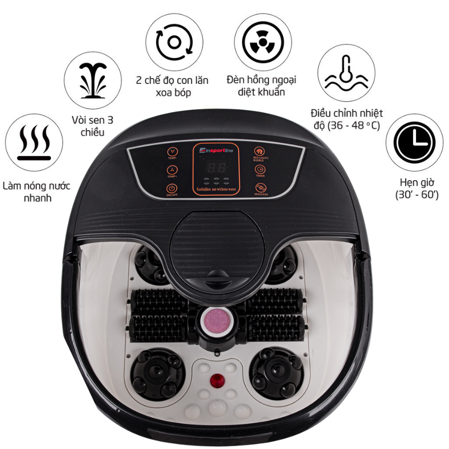 ✔️Bồn massage chân trongSPORTline Choodeek là một phương pháp hỗ trợ thư giãn tuyệt vời mà bạn sẽ đánh giá cao sau một ngày làm việc mệt mỏi, sau một hoạt động thể thao, đi bộ đường dài hoặc chỉ trong những buổi tối dài mùa đông. Chỉ cần nhấn một nút, bạn sẽ bật bồn tắm bong bóng , giúp mát xa dễ chịu và lưu thông máu đến bàn chân và mắt cá chân . Bạn có thể cài đặt nhiệt độ nước theo sở thích của mình trong khoảng 35 - 48 ° C. Spa tự làm nóng nước và hiển thị nhiệt độ đang được chọn trên màn hình LED.