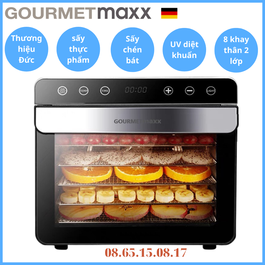 Máy sấy thực phẩm GOURMETMAXX 8 khay - Đèn UV diệt khuẩn, máy sấy bát