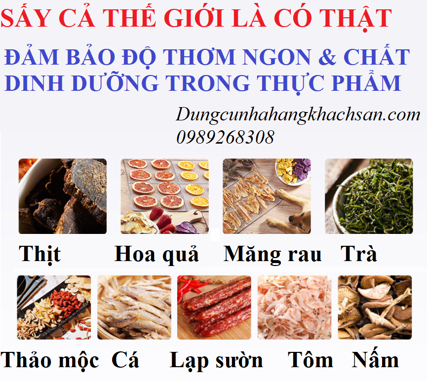 - Sản phẩm với đúng nghĩa sấy cả thế giới, an toàn vệ sinh thực phẩm tuyệt đối, bạn có thể sấy hoa quả, t.huốc bắc, thảo dược, trà xanh, thịt, lạp sườn, cá, tôm.. dành để lưu trữ thực phẩm & sử dụng khi trái mùa & còn vô cùng thơm ngon
