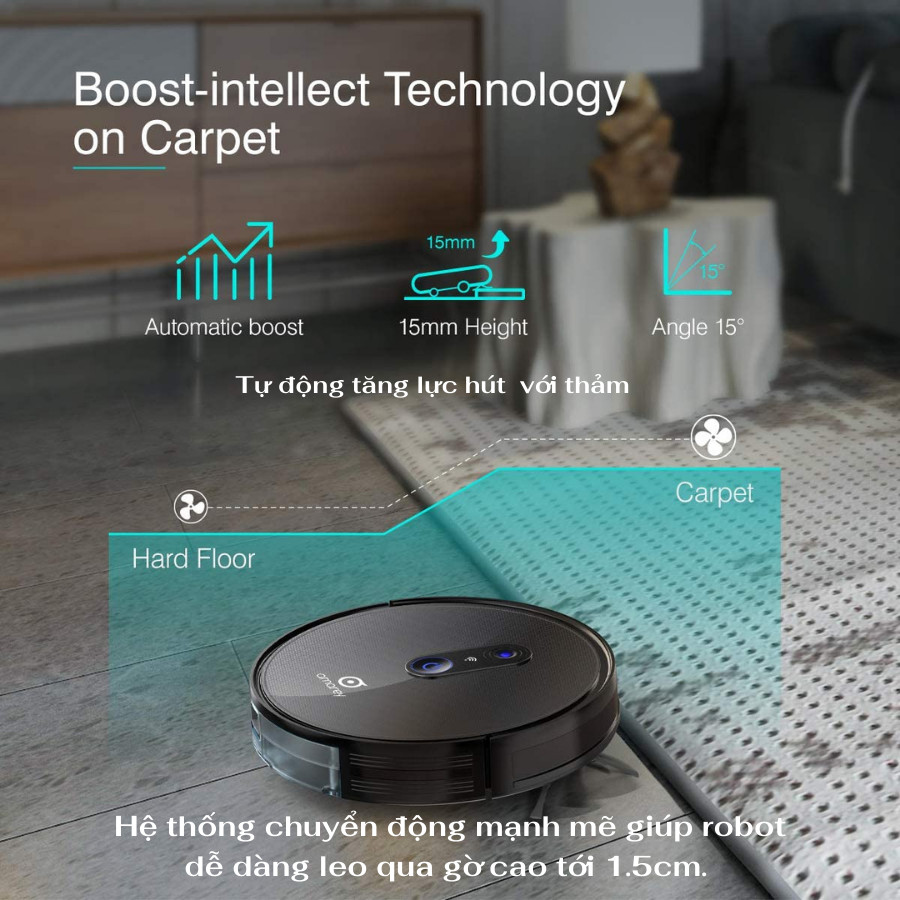 Robot hút bụi A980 có thể điều chỉnh lực hút theo loại sàn hoặc loại thảm khác nhau để làm sạch tốt hơn đồng thời giữ yên lặng. Nó dễ dàng nhặt các mảnh vụn, không chỉ bụi bẩn và lông thú cưng mà bạn có thể nhìn thấy mà còn cả các chất gây dị ứng và bụi mà bạn không thấy. Thiết kế tốt nhất cho sàn cứng, thảm và vật nuôi. Thao tác dễ dàng với điều khiển từ xa hoặc tự động làm sạch tất cả chỉ bằng một lần chạm.
