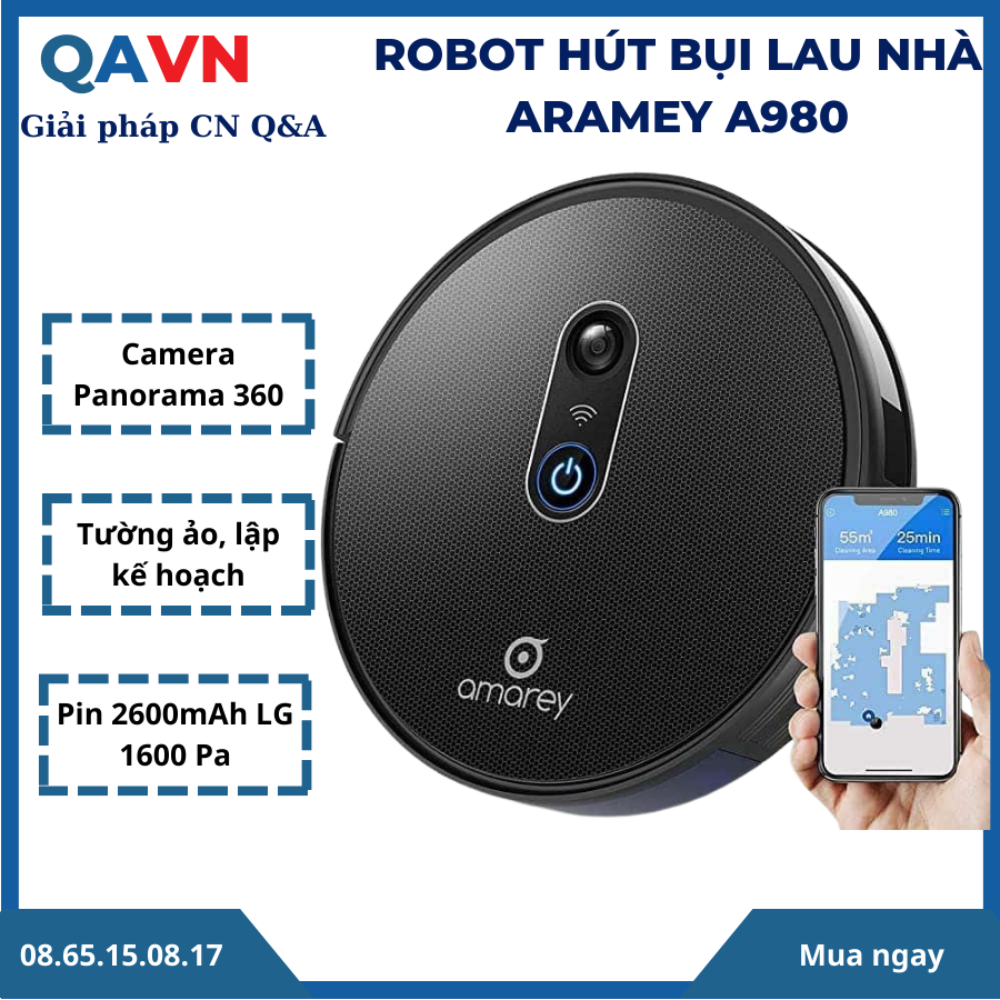 Robot hút bụi lau nhà AMAREY A980 là phiên bản cao cấp của hãng, sản phẩm được kết cấu từ các linh phụ kiện cao cấp của các hãng lớn, nổi tiếng thế giới. Sản phẩm có độ bền cao